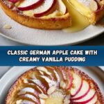 Apfelkuchen mit Vanillepudding is a classic German apple cake featuring a buttery crust topped with thinly sliced apples and a smooth layer of homemade vanilla pudding. Finished with a sprinkle of cinnamon and powdered sugar, this comforting dessert combines tender fruit with creamy custard in every bite.