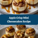 There is something truly irresistible about the Apple Crisp Mini Cheesecakes Recipe that brings together the best of two classic desserts in a perfectly bite-sized form. Whether you’re baking for a holiday party or just treating yourself to a little sweetness, these mini cheesecakes deliver comfort, flavor, and smiles with every bite. I hope you enjoy making and sharing these as much as I do—happy baking!