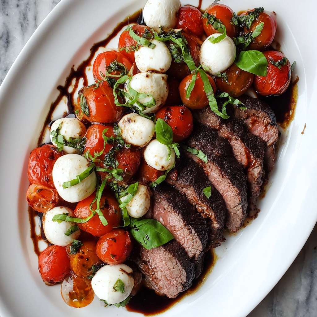 Try serving the steak and Caprese topping in individual bowls or pretty open-faced sandwiches for a fun twist. You could also create a layered platter with the ingredients arranged artfully, letting your guests build their own bites.