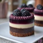 - Prepare the Blackberry Mousse: Puree the fresh blackberries with lemon juice and strain the mixture to remove seeds. Gently heat the strained puree and dissolve the gelatin powder into it, stirring continuously. Allow the mixture to cool slightly but not set. Fold this cooled blackberry mixture into the whipped heavy cream carefully to keep the mousse light and airy. Spread the mousse evenly over the set cheesecake layer. Return to the fridge and chill until firm.