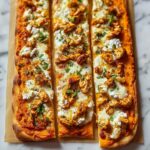 This Buffalo Chicken Flatbread is a quick and flavorful dish combining spicy buffalo wing sauce, tender cooked chicken, and creamy blue cheese dressing atop crispy flatbreads. Perfect for a casual meal or game day snack, it offers a delightful mix of spicy, tangy, and cheesy flavors in every bite.