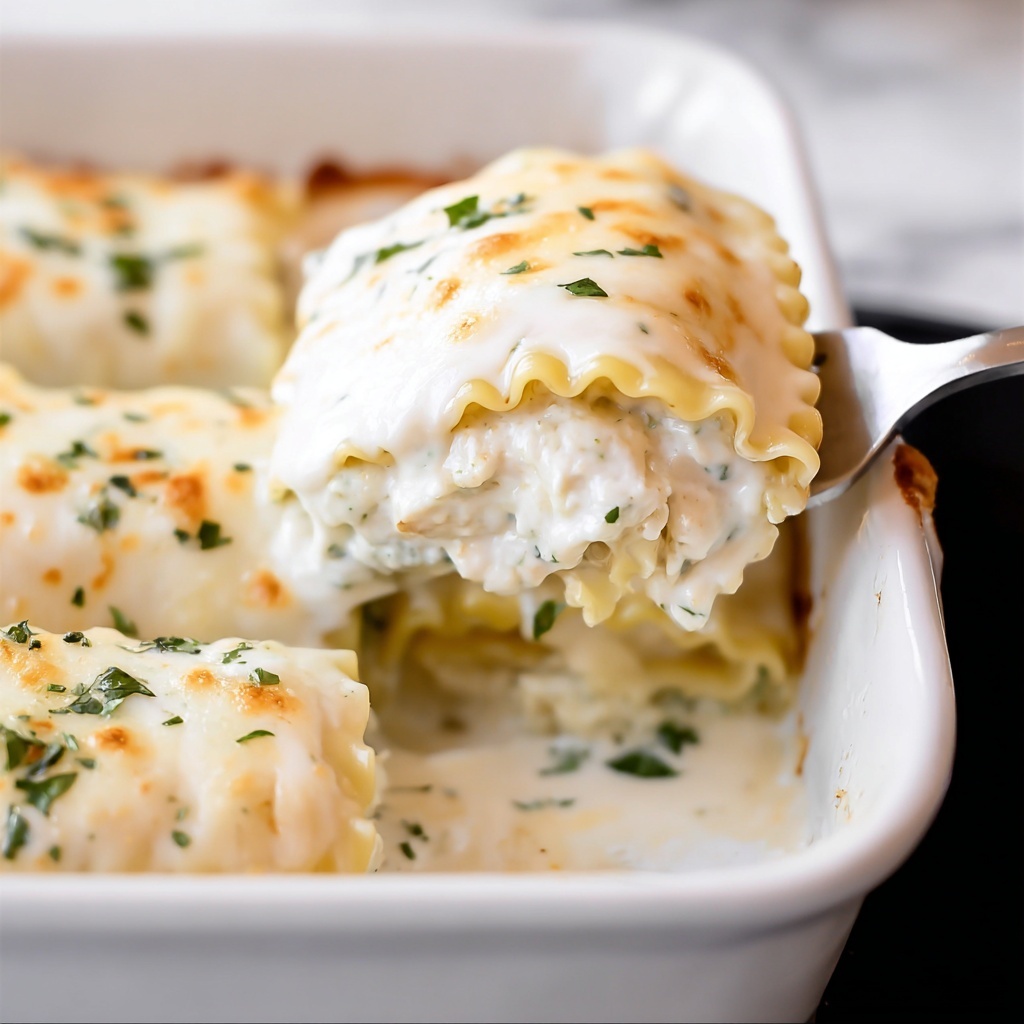 If you’re looking to impress, consider plating each individual roll-up vertically on a large, shallow bowl and drizzle extra Alfredo sauce around them with a sprinkle of fresh herbs. For a family-style meal, serve them all on a rustic wooden board so everyone can grab their favorite piece and customize it with extra cheese or herbs at the table.