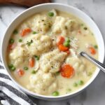 10. Serve Hot: Ladle the chicken, creamy broth, vegetables, and pillowy biscuit dumplings into bowls. Serve immediately for a warm, comforting meal.