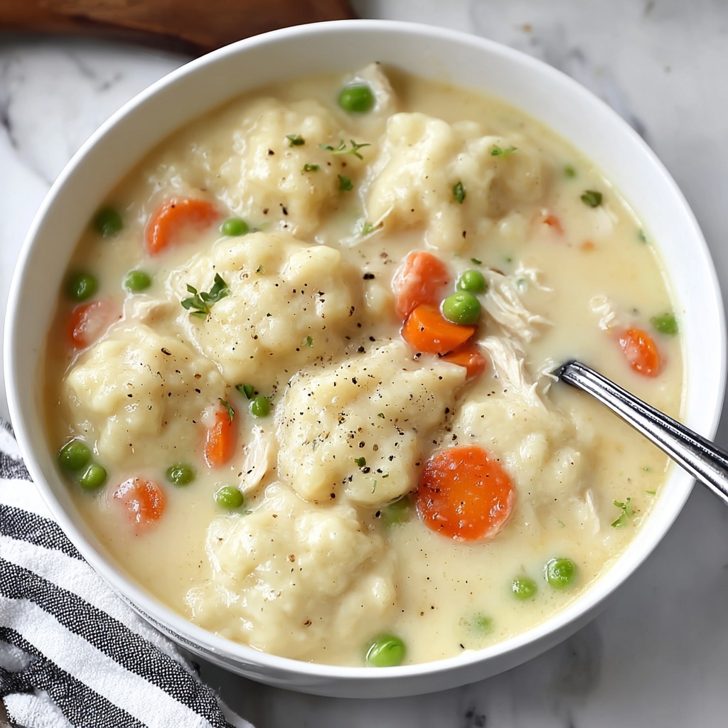 This comforting Chicken and Dumplings with Biscuits recipe combines tender chicken breast simmered in a flavorful creamy broth with homemade fluffy biscuit dumplings. Perfect for a hearty meal, it features a rich blend of vegetables, herbs, and a simple biscuit dough dropped directly into the pot to cook until puffed and golden.