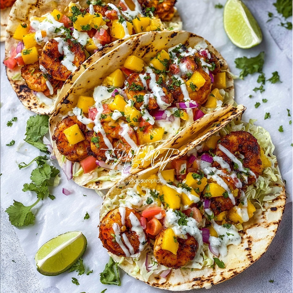 These Chili Lime Shrimp Tacos with Mango Salsa are a vibrant and flavorful dish perfect for a quick and satisfying meal. Juicy shrimp are marinated in a zesty blend of lime, garlic, and spices, then pan-seared to perfection and served on toasted corn tortillas with crunchy cabbage, fresh mango salsa, and a drizzle of creamy Mexican crema.