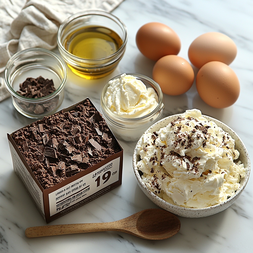 For a show-stopping cake like this, the ingredients are surprisingly straightforward, yet each one plays a starring role. The chocolate cake mix offers a deep, cocoa-infused base, while the eggs, oil, and water ensure the cake is tender and moist. Ice cream adds that luscious, cold creamy texture, and whipped topping provides a light, fluffy finish that pulls it all together.