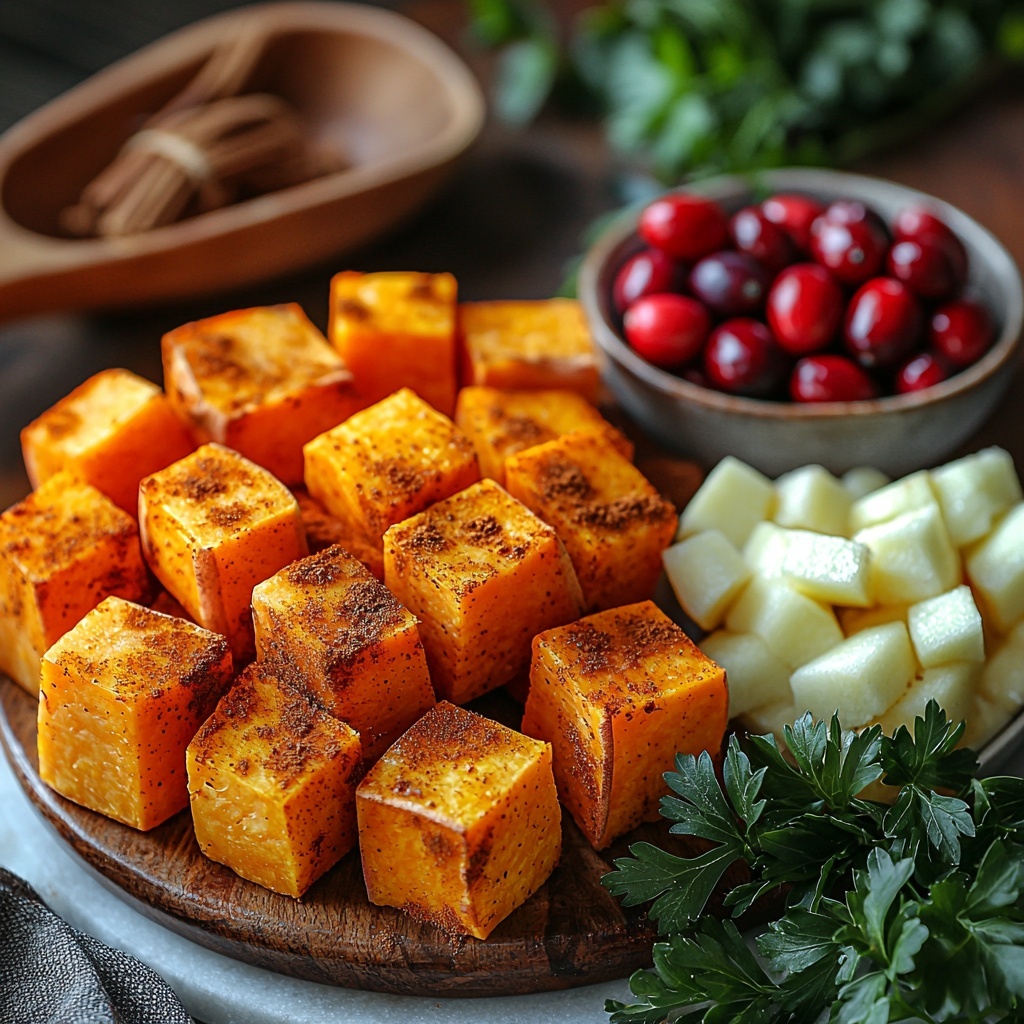 This recipe calls for a handful of straightforward, fresh ingredients that come together to create an unforgettable flavor profile. Each item brings its own magic, whether it’s the natural sweetness of the potatoes or the festive zing from cranberries, creating a wonderful balance in every bite.