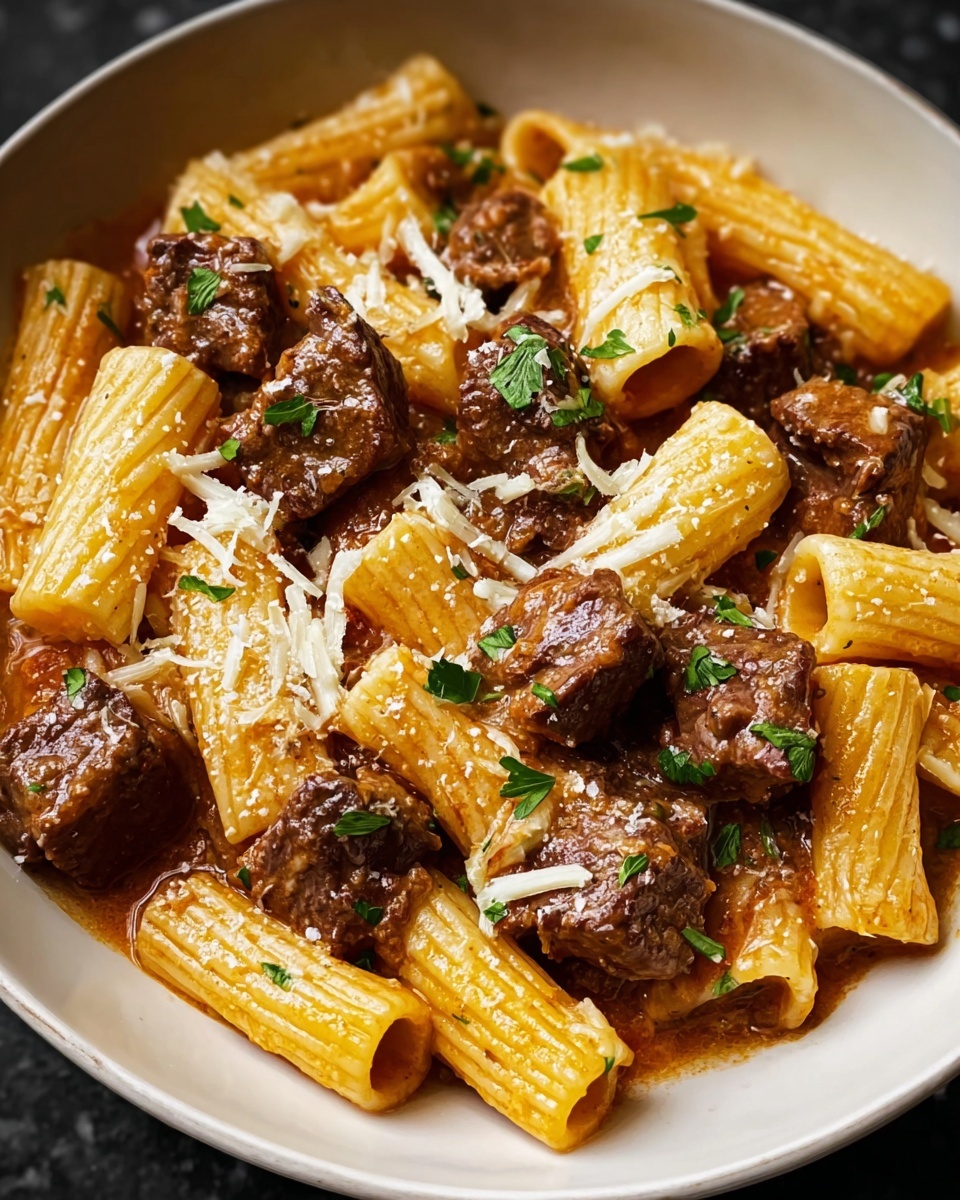 How to Make Creamy Parmesan Beef with Rigatoni Pasta Recipe