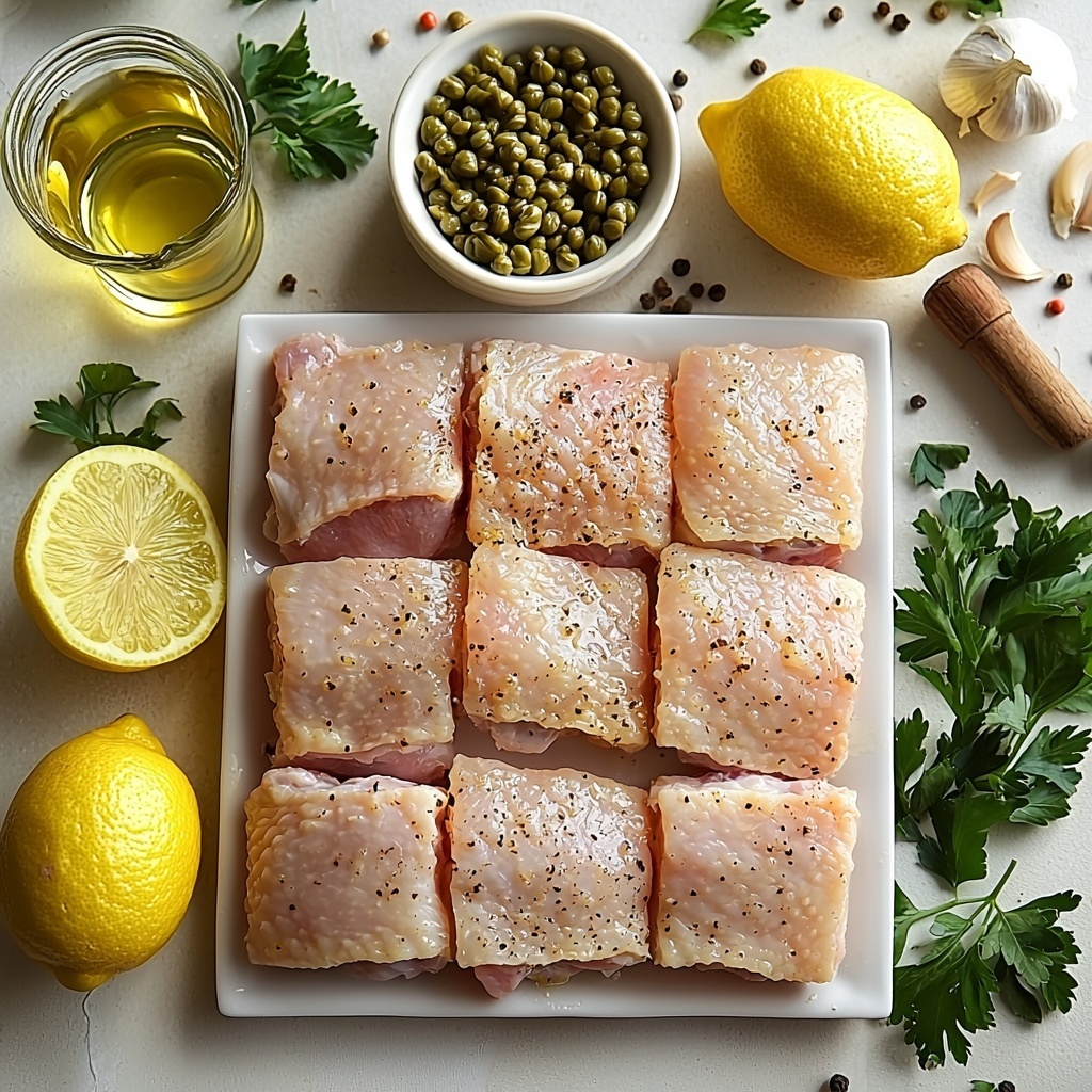 The magic of the Crispy Baked Chicken Thighs with Capers Recipe lies in its simple, quality ingredients that each bring something special to the table. From the zesty lemon to the buttery richness and briny capers, each component is essential for building layers of flavor and perfect texture.