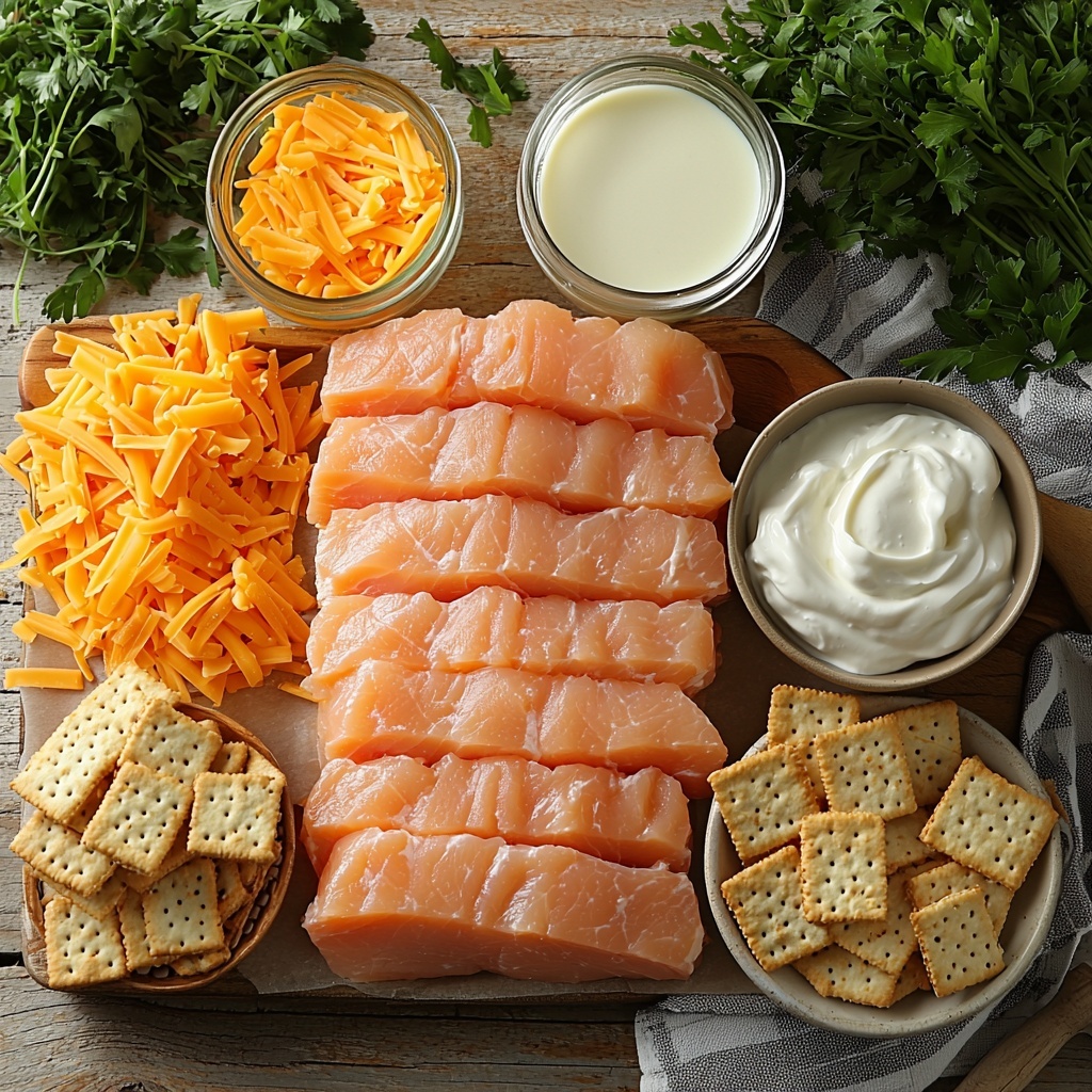 Crispy Cheddar Chicken is a comforting and easy-to-make dish featuring tender, juicy chicken breasts topped with a creamy cheddar and crushed cracker crust. Perfect for a family dinner, this recipe combines simple ingredients like sour cream, sharp cheddar cheese, and Ritz crackers to create a golden, crispy topping baked to perfection.