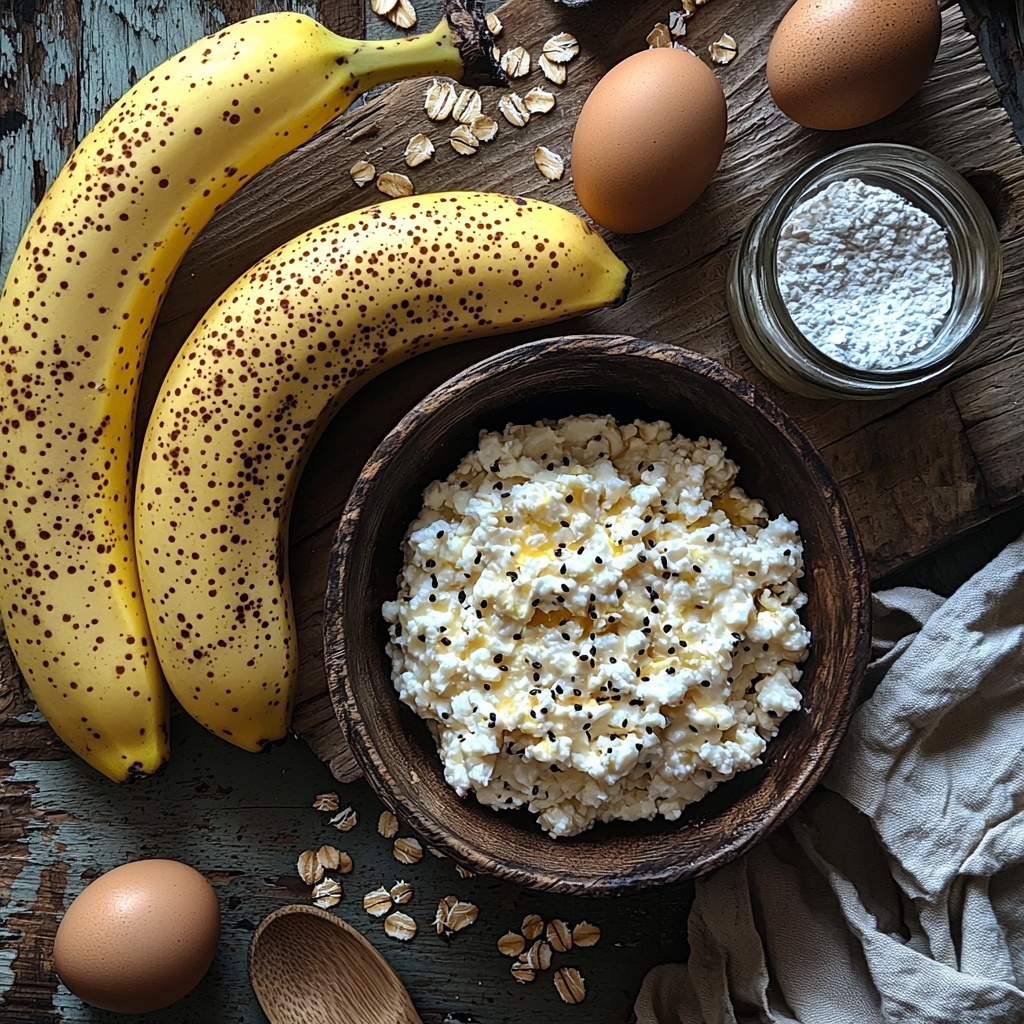 - Prepare the Batter: In a blender or mixing bowl, combine cottage cheese, ripe bananas, rolled oats, eggs, and baking powder. Blend or mix thoroughly until the mixture forms a smooth batter with no large lumps. The batter should be thick but pourable.