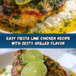 Fiesta Lime Chicken is a vibrant and flavorful grilled chicken dish marinated in a zesty blend of lime juice, soy sauce, tequila, honey, and spices. Topped with melted Mexican cheese and crunchy tortilla chips, this festive recipe delivers a perfect balance of tangy, savory, and spicy notes, making it ideal for a lively weeknight dinner or a casual gathering.