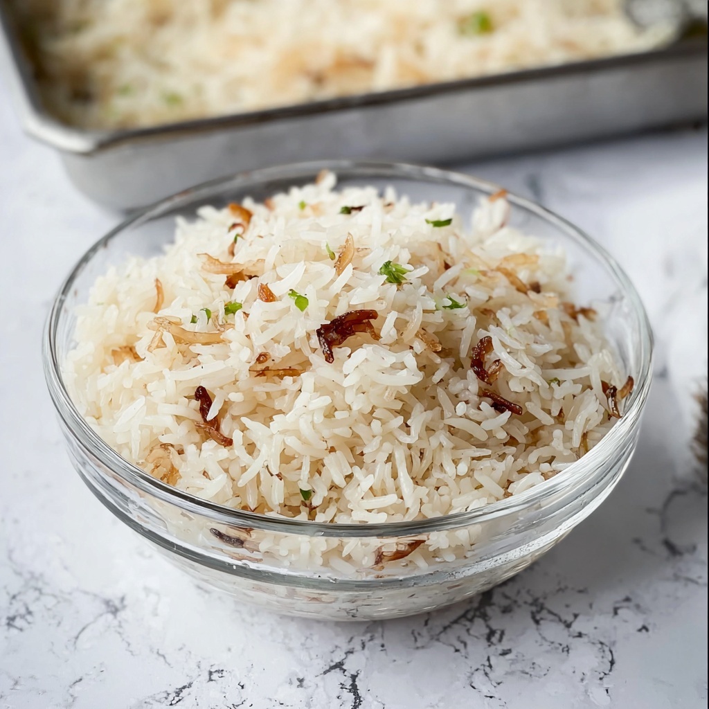 Once out of the oven, fluff the rice gently with a fork to separate the grains and release steam. Sprinkle chopped fresh parsley over the top to add a fresh, herbal brightness that complements the rich, savory flavors perfectly.