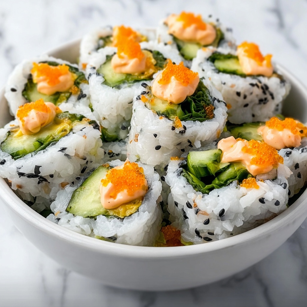 Sprinkle toasted sesame seeds over the top for crunch and nuttiness that complements the salad perfectly. If you’re using nori seaweed, add thin strips as a garnish to bring in that authentic California roll vibe, with a hint of ocean freshness.