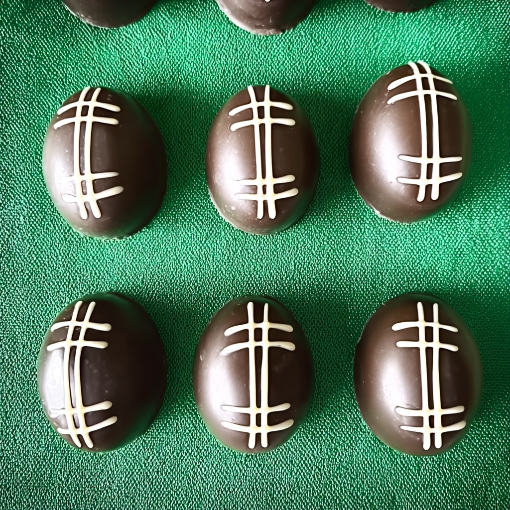 Melt the chocolate candy wafers until smooth and creamy, then carefully dip each shaped football into the melted coating, ensuring an even and full coverage. This outer shell adds a satisfying crunch and locks in moisture.