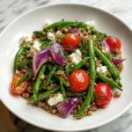 This Green Bean Farro Picnic Salad is a refreshing and nutritious dish perfect for summer gatherings or light lunches. Featuring tender farro, crisp green beans, juicy cherry tomatoes, and tangy feta cheese, all tossed in a zesty lemon-olive oil dressing, it combines wholesome ingredients with vibrant flavors and satisfying textures.