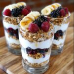 - Layer the Parfait: Take clear serving glasses and begin by spooning a layer of the yogurt mixture at the bottom. Follow with a layer of granola and then a layer of mixed berries and sliced bananas. These distinct layers offer contrasting textures and flavors.