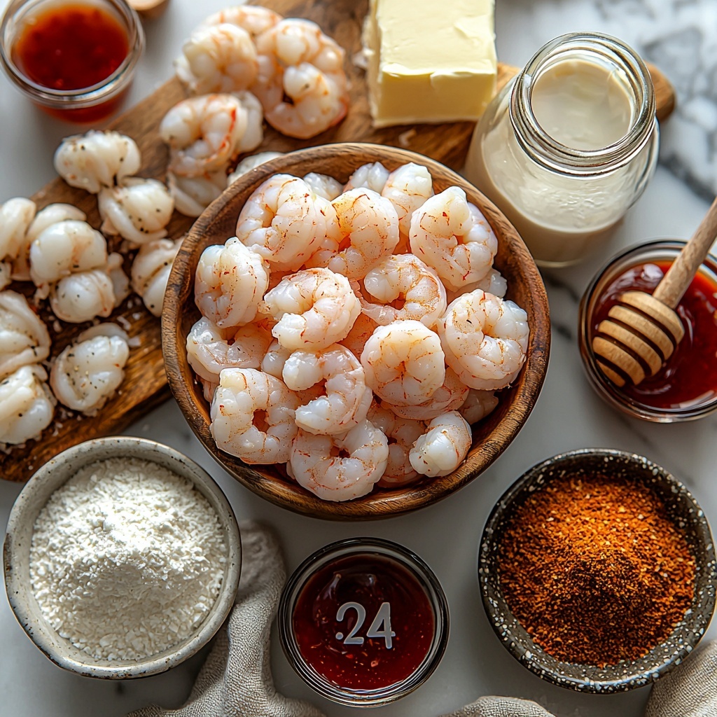 Getting the ingredients right is the secret to nailing this Hot Honey Fried Shrimp Recipe. Each component plays a crucial role in crafting the ideal texture and flavor—from the tender shrimp and crispy coating to the punchy, sweet-spicy glaze that ties it all together.