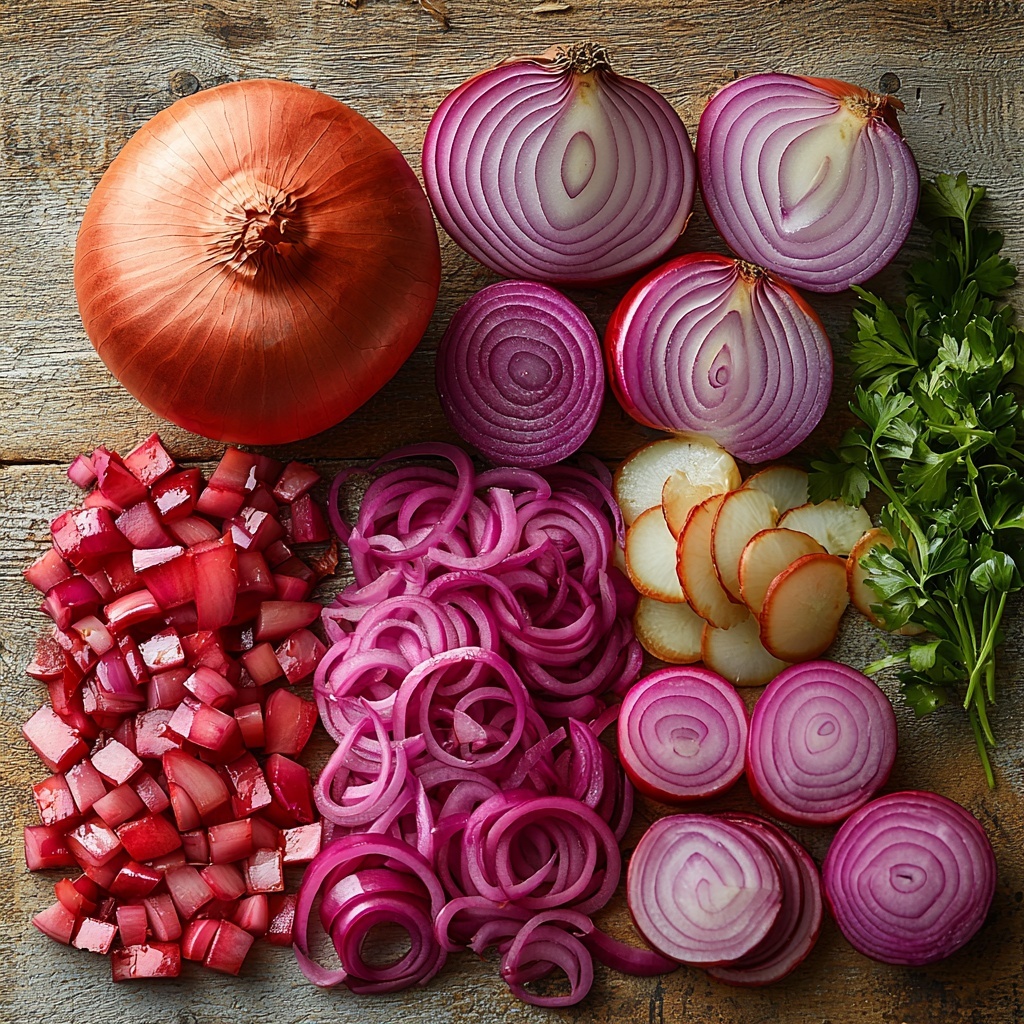This recipe calls for minimal ingredients, but each one plays an important role in guiding you to the perfect onion cut. The simplicity is what makes this beginner-friendly technique so accessible and essential.