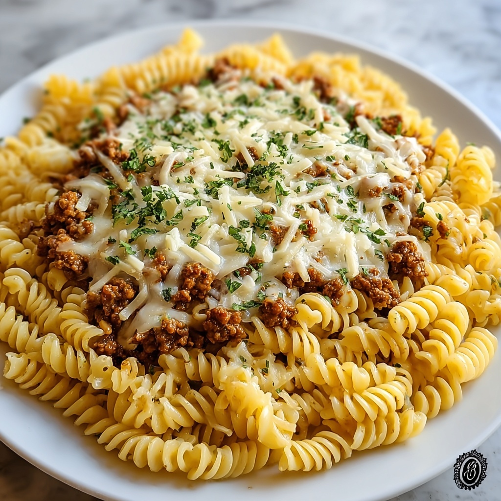 This indulgent cheesy rotini pasta with garlic butter sauce is a comforting and hearty dish perfect for a family dinner. Featuring tender rotini pasta coated in a rich garlic butter sauce, combined with savory ground beef, and topped with melted mozzarella and Parmesan cheese, this recipe offers a deliciously creamy and flavorful experience. It’s easy to prepare and can be customized with alternative proteins or cheese varieties for a healthier or different twist.