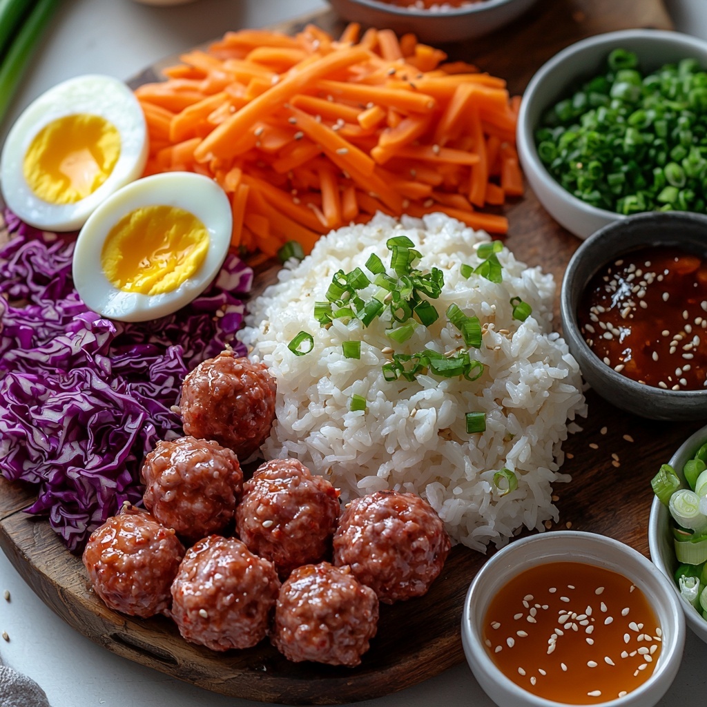 Gathering these ingredients is straightforward, and each one plays a vital role in making Juicy Korean BBQ Meatball Rice Bowls – Your New Dinner Favorite Recipe so irresistible. The interplay of ground meats ensures juiciness, while aromatics like garlic and ginger bring that signature Korean flavor punch.