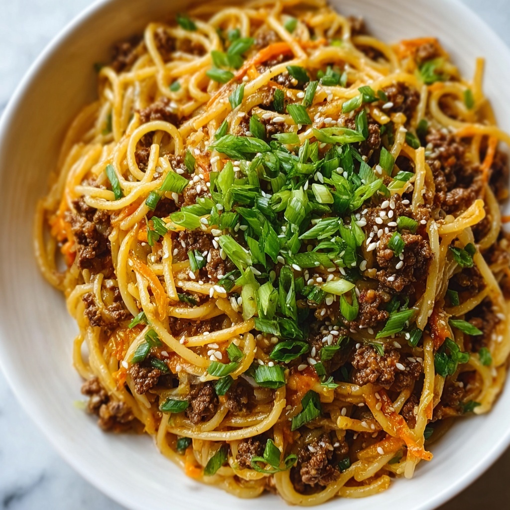 For a fun twist, serve your Mongolian Ground Beef Noodles Recipe in individual bowls topped with a soft-boiled egg or pair it with crispy wonton chips for added texture. If you’re entertaining, consider assembling it as a noodle bar where guests can customize their garnishes and spice levels for personalized plates full of flavor.
