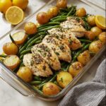 This One-Pan Garlic Herb Chicken with Potatoes & Green Beans is a wholesome, flavorful meal perfect for a convenient yet delicious dinner. Tender chicken breasts are seasoned with garlic, herbs, and spices, then roasted alongside baby potatoes and vibrant green beans, all drizzled with a zesty lemon-Dijon sauce. The entire dish is cooked in a single pan for easy cleanup and maximum flavor fusion.