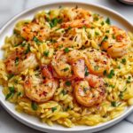 This One-Pot Shrimp Orzo is a quick and flavorful seafood pasta dish perfect for weeknight dinners. Tender shrimp cooked with garlic and olive oil combine with perfectly simmered orzo in a savory chicken broth, finished with fresh parsley and a bright splash of lemon juice for a light, satisfying meal.