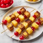 These Pineapple Upside Down Cake Kabobs are a fun and delicious twist on the classic dessert. Perfect for grilling or cooking over a campfire, juicy pineapple chunks are coated in a cinnamon-brown sugar mixture and paired with buttery, sugar-coated pound cake cubes and sweet maraschino cherries on skewers. The kabobs are grilled until golden brown, offering a delightful combination of caramelized fruit and moist cake that’s great for summer gatherings or outdoor treats.