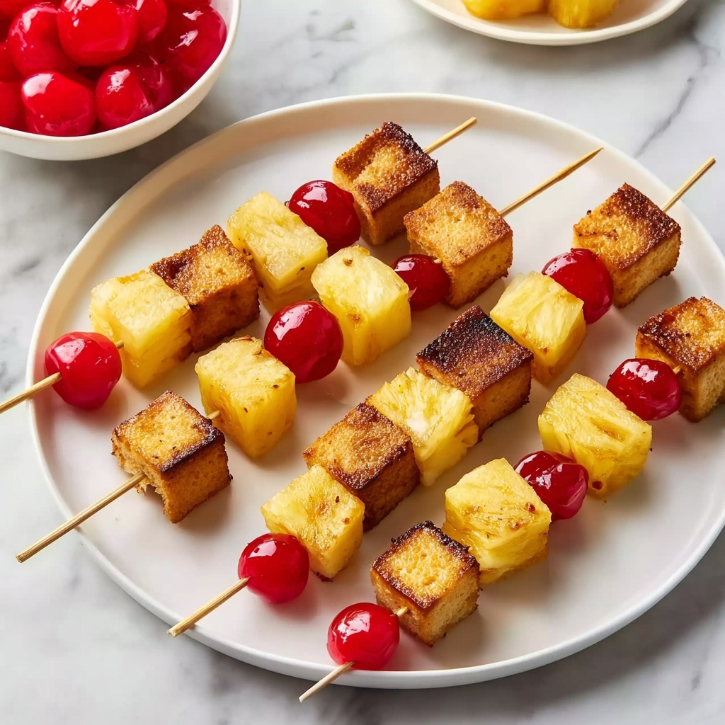 If you have a sweet tooth and love a fun twist on classic desserts, you are going to fall head over heels for this Pineapple Upside Down Cake Kabobs Recipe. Imagine the tropical juiciness of caramelized pineapple, the rich, buttery pound cake, and bursts of cherries, all threaded onto skewers and grilled to golden perfection. It’s like mini portable pineapple upside down cakes that are perfect for barbecues, campfires, or just a delightful treat at home. Each bite brings a perfect balance of caramelized sugars, buttery textures, and fruity zing that will have everyone asking for seconds.