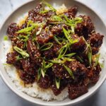 This dish shines alongside simple steamed white or jasmine rice, which absorbs the sauce beautifully. For a veggie boost, try steamed broccoli, sautéed bok choy, or crisp cucumber kimchi to complement the beef’s richness and add crunch and freshness that round out the meal perfectly.