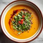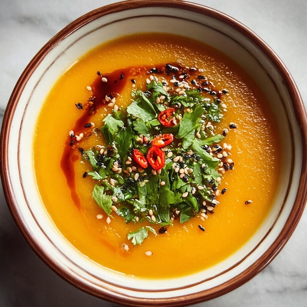 Fresh cilantro is the star garnish for this soup, lending a crisp herbal note that cuts through the richness of the coconut milk and complements the spicy undertones perfectly. For an added crunch, consider toasted pumpkin seeds or a swirl of coconut cream to wow your guests even more.