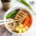 Once your tofu is baked to perfection, it’s time to build the bowl! Place about 1 cup of cooked noodles into each serving bowl. Then, divide the sliced carrots, snap peas, pineapple chunks, baked tofu, and thinly sliced scallions evenly among the bowls. Finish by drizzling each bowl with 1 tablespoon of Soy Vay® Veri Veri Teriyaki® Sauce to boost that mouthwatering, sticky teriyaki glaze. Serve right away for the freshest flavors and textures.