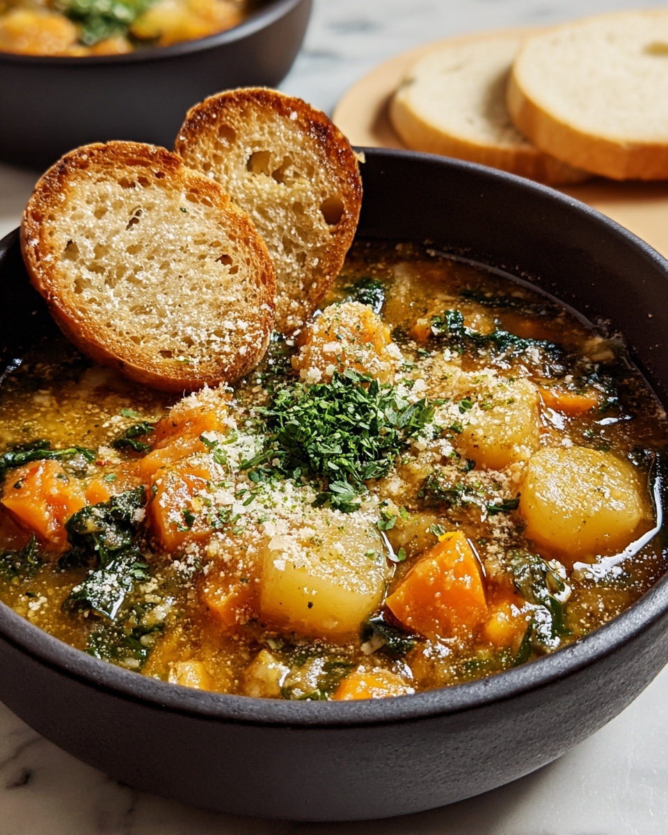 Simple garnishes like a drizzle of good-quality olive oil and a generous sprinkle of freshly grated Parmesan cheese can turn this rustic soup into a refined treat. Fresh thyme leaves or a small pinch of red pepper flakes also add a lovely visual and taste contrast right at the table.
