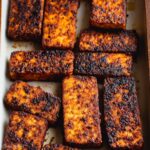 - Flip and continue baking: After 20 minutes, flip each tofu slice, drizzle with any remaining marinade, and bake for an additional 15 minutes, or until the tofu is crispy and golden brown.